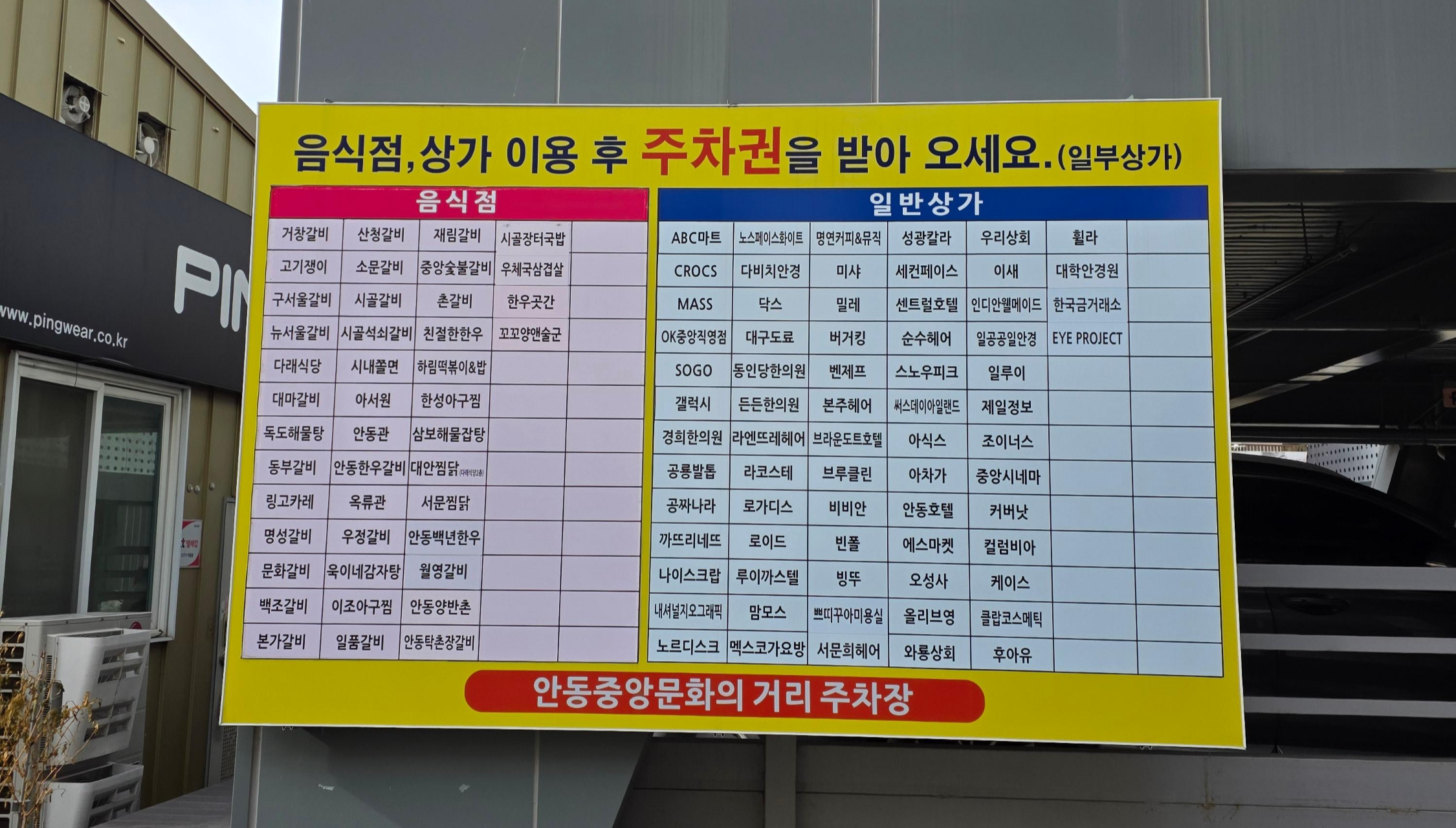 - 위치: 경북 안동시 중앙로 62 (매장과 도보 2~3분 거리)