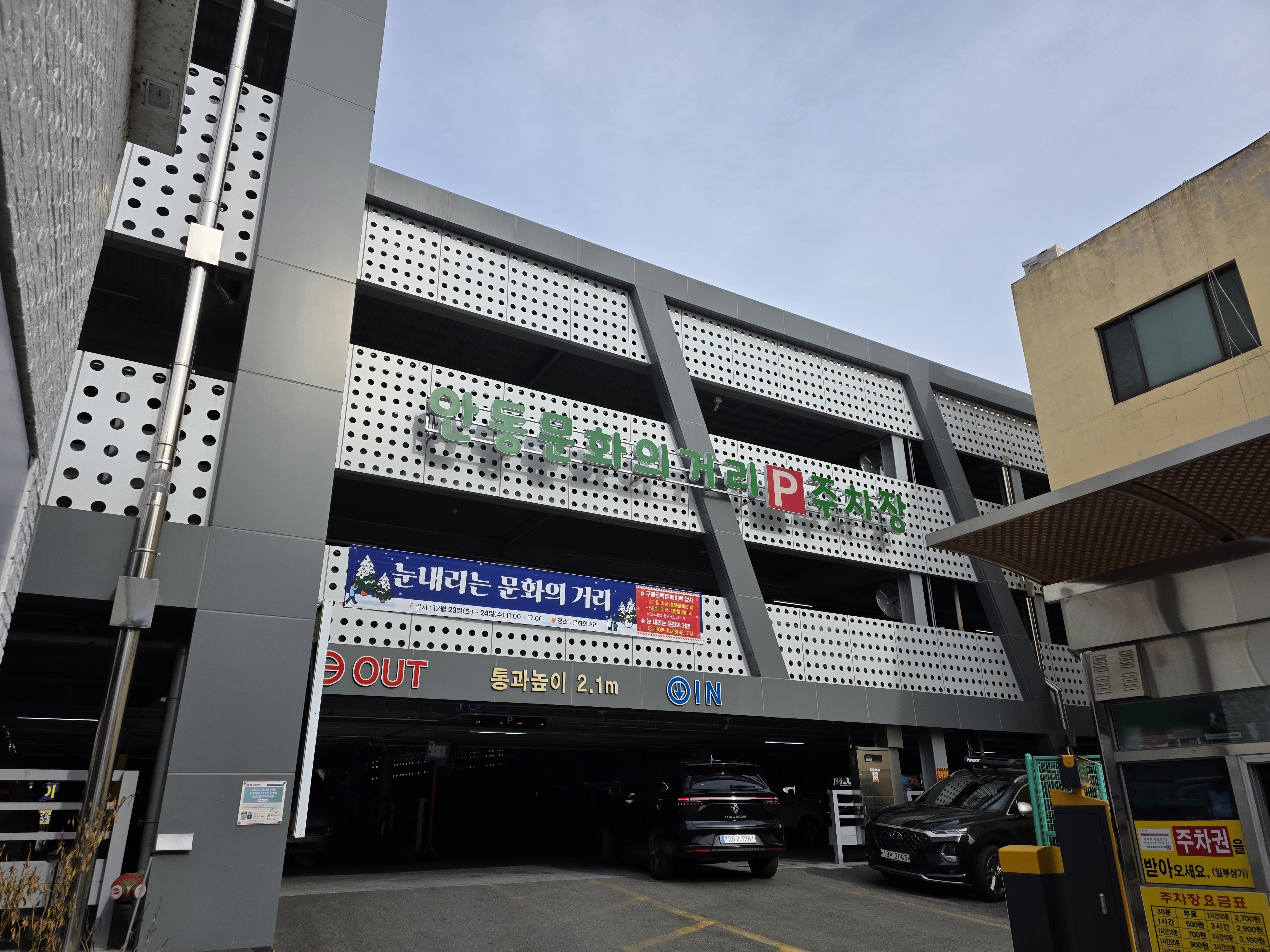 맘모스 베이커리는 안동 시내 '문화의 거리(차 없는 거리)'에 위치해 있어 매장 바로 앞 주차가 불가능합니다. 저희는 가장 가깝고 편리한 공영주차장을 이용했습니다.
